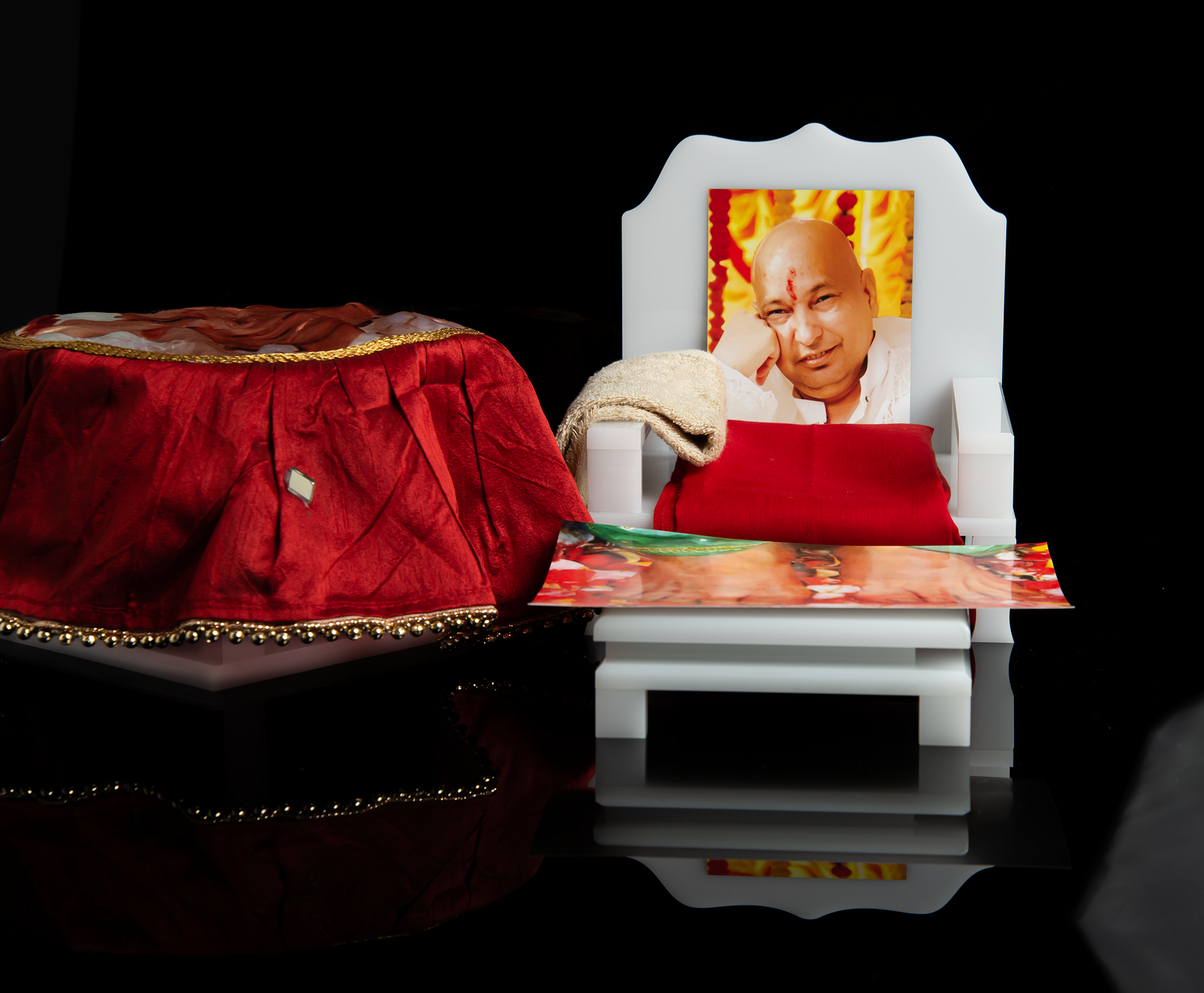Proudly handmade in Australia, Experience ultimate comfort with our unique handcrafted Guru ji Swaroop Gaddi. This premium gaddi set is exquisitely crafted from Opal plexiglass, ensuring both durability and elegance. Elevate your space with the perfect combination of form and function.